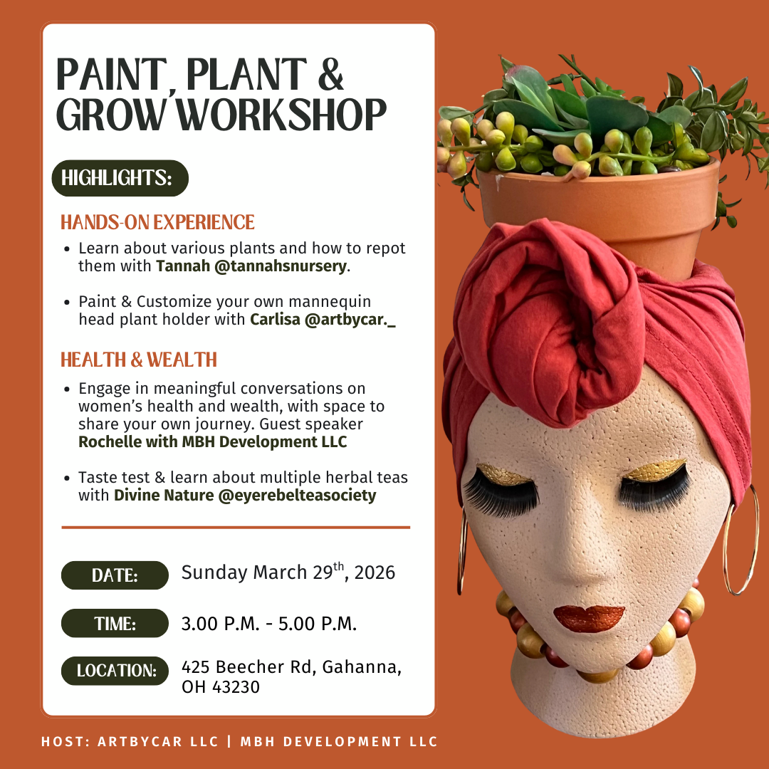 We’re proud to partner with MBH Development LLC, Tannah’s Nursery (@tannahsnursery), and Divine Nature (@eyerebelteasociety) to bring this creative workshop to life.